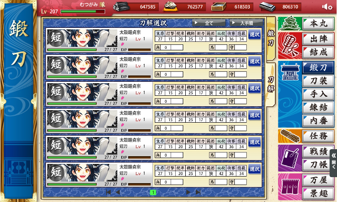 あと玉鋼が減り傾向だけど70万は切らないように気を付けましょう!(今週の標語)