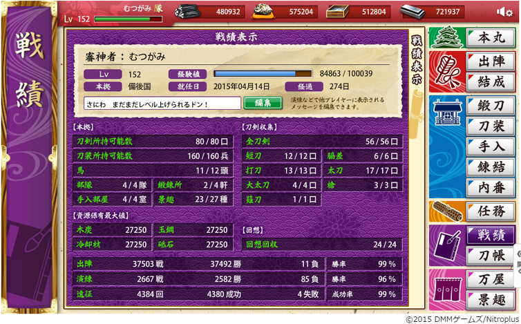 特に事前予告とかなんもなく唐突に審神者レベルの上限が開放されたりしたので、