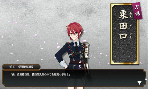さにわのことは大将と呼んでくれるので大将組……かと思うのだけど、性格は乱に近いような? まだちょっとしか触ってないですけど小悪魔系です? ものすっごい秘蔵っ子アピールしてきますね?w