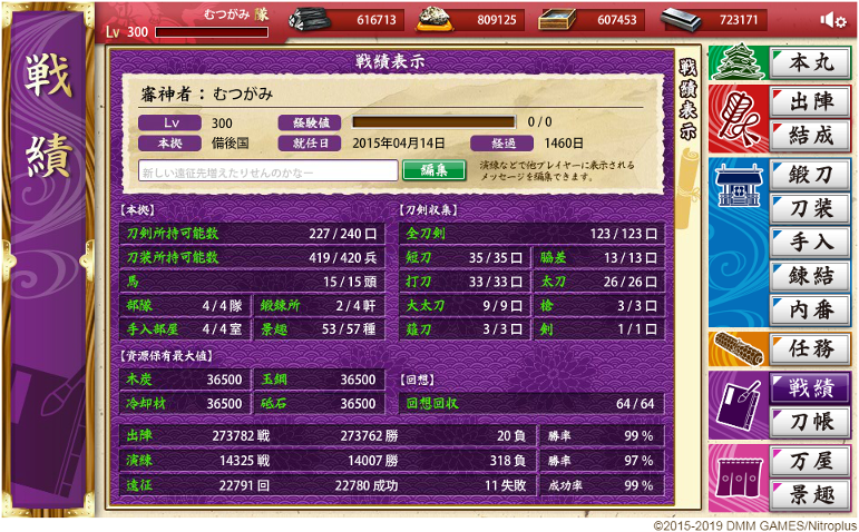 2018/4/27 審神者レベル300達成