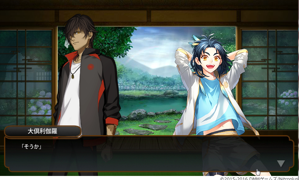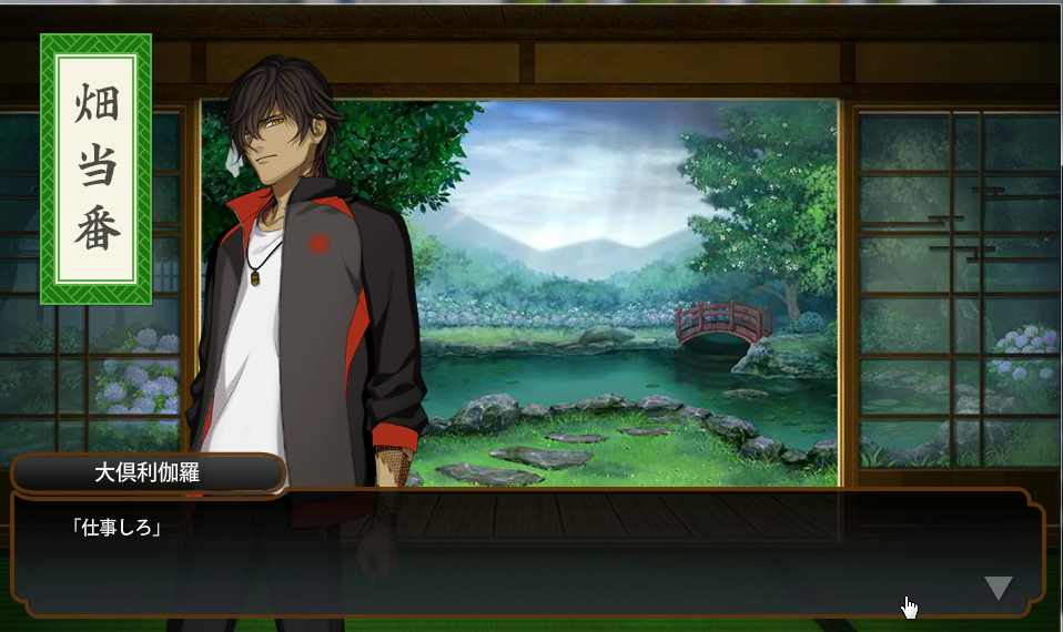 で、大倶利伽羅との畑内番(開始)。冬は寒そうな格好ですなー。