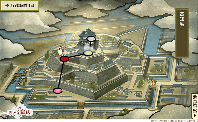 ・高知城 追い込み後から城入口までは自力で歩く必要がある。入口は画像参照。中に入って3マスでボス。