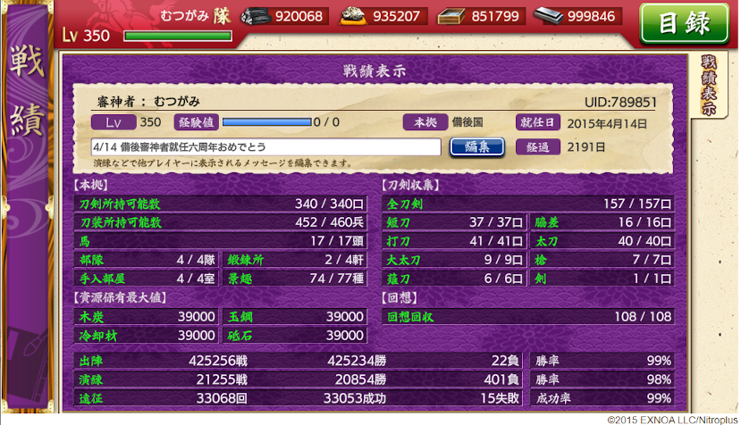 正月だったり就任記念日だったりブレっブレな我が本丸の現状報告。